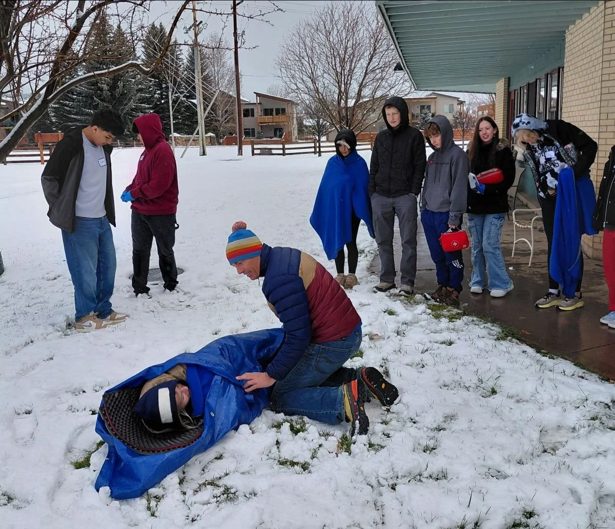 From bandaging simulated gushing wounds to recognizing the early signs of hypothermia, the group worked through hands-on scenarios designed to test both knowledge and composure. Confidence was understandably low on day one, but as the weekend unfolded, students began asking the right questions, understanding how the body functions under stress, and confidently determining the best course of action in each situation. What started as uncertainty turned into preparedness, teamwork, and leadership.